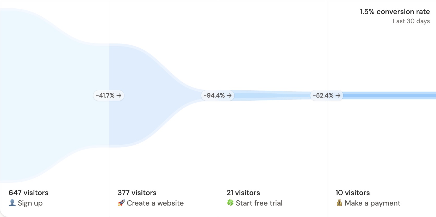 - Interactive insights - Hover over any step to see detailed conversion metrics