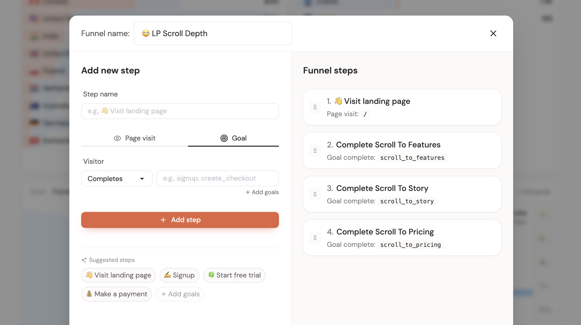 Track how visitors engage with your landing page by measuring scroll depth to key sections. We use DataFast's scroll tracking to track scroll depth and DataFast funnels to see where visitors drop off and improve conversion rates.