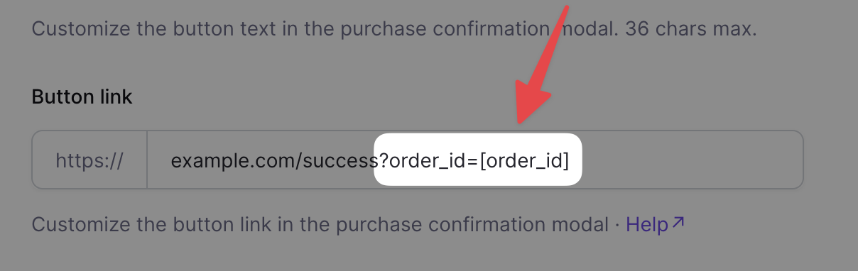 For Confirmation Modal and Email Receipt, update the Button Link to redirect customers to your website and add