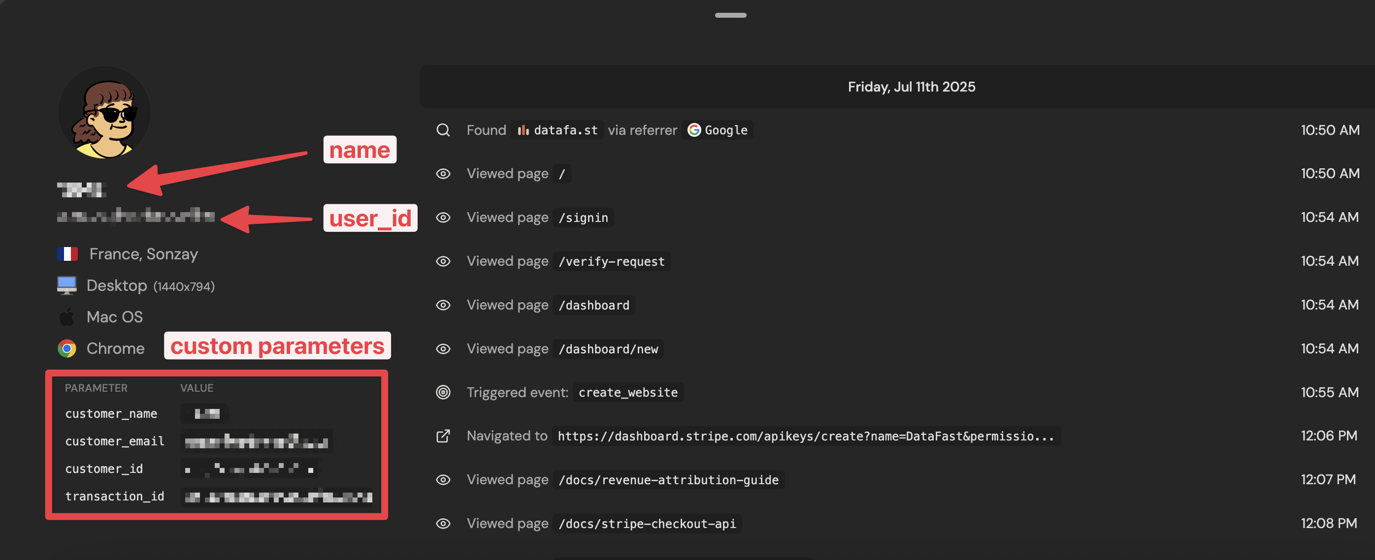 Revenue attribution: If revenue attribution is present, we automatically identify the customer using data from the payment provider.